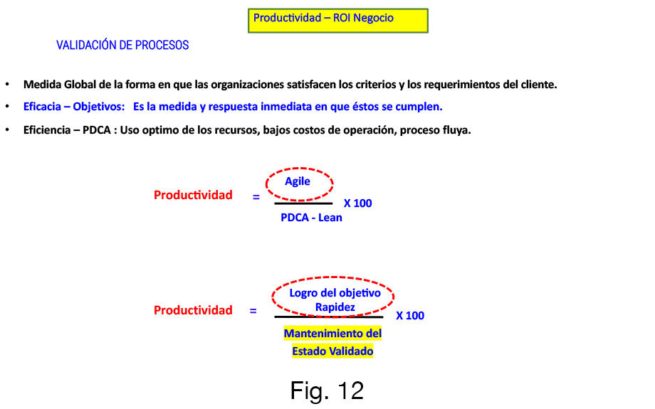 Calculando la Productividad, no a partir de la definición tradicional de Taylor (Fig. 11), sino desde la perspectiva Lean, demostrando el mantenimiento del estado validado en todo el ciclo de vida del producto (Fig. 12), tendríamos: