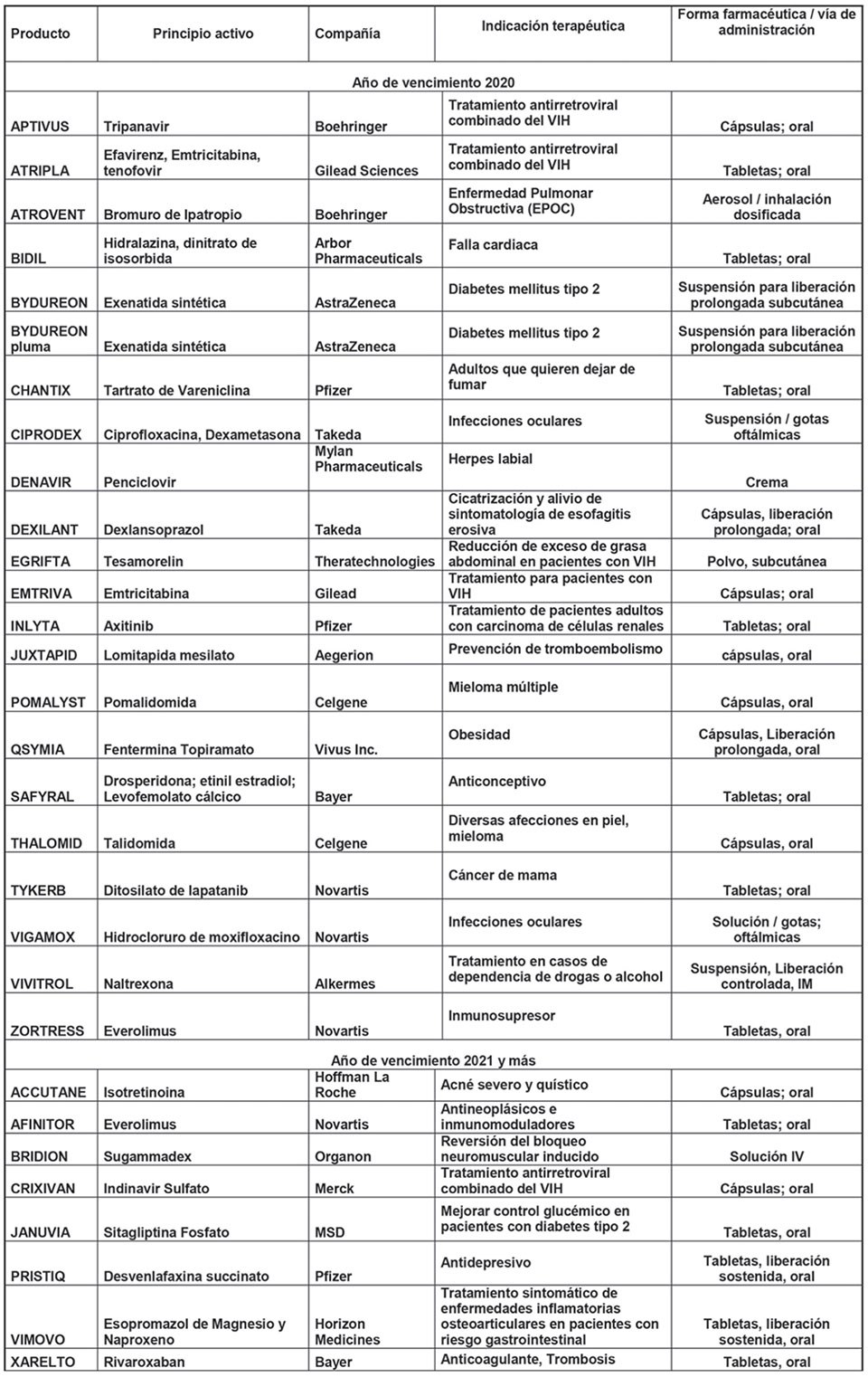 En esta primera edición del año, como lo he venido haciendo, considero importante tocar el tema de los medicamentos cuya patente está por vencer durante 2020.