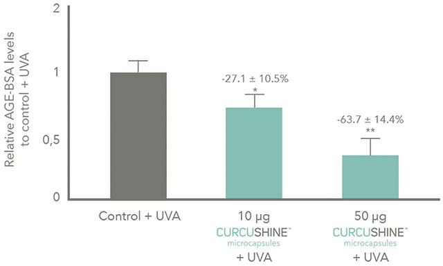 CURCUSHINE™ microcapsules protege significativamente de la glicación inducida por UVA.