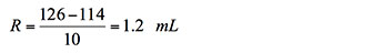- Determinar la tolerancia del requisito. El requisito es de 114 a 126 mL, que puede ser expresado como 120 ± 6 mL, por lo que la tolerancia (T) es de ± 6 mL y la amplitud de esta (A) es de 12 mL, lo cual puede ser expresado como porcentaje (±6x100/120 = 5%).