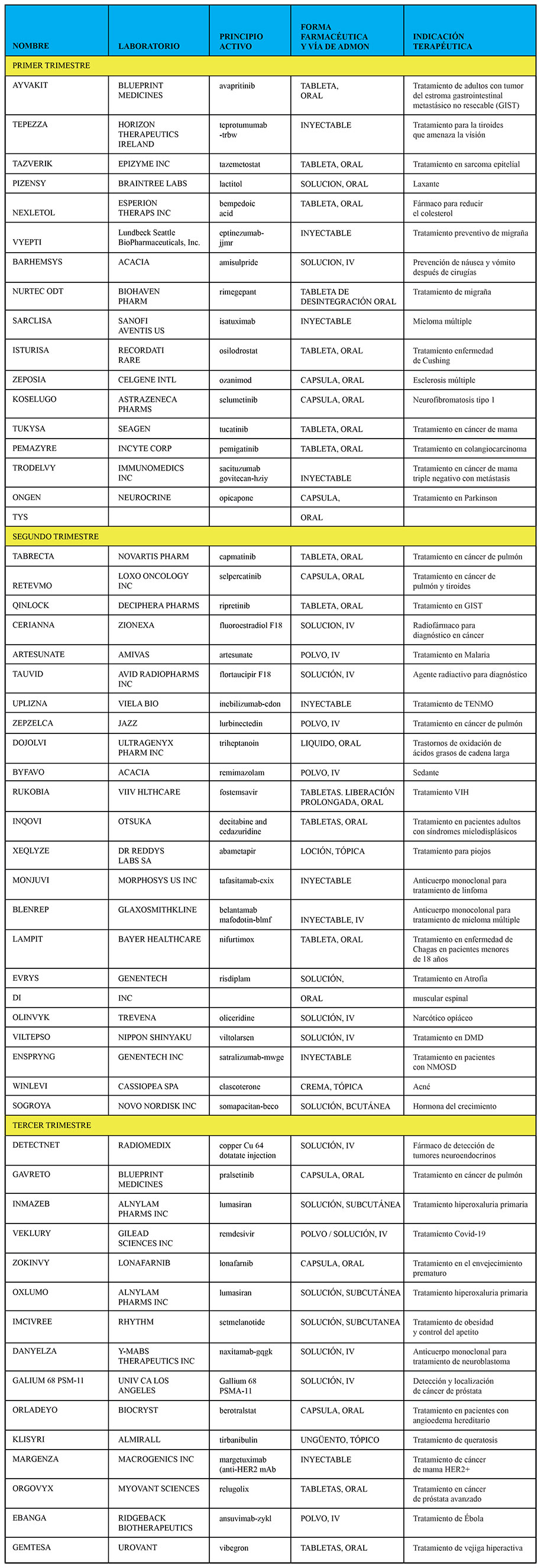 Durante 2019, la FDA aprobó 48 moléculas nuevas y para 2020 logró aprobar 53. Respecto a los grupos terapéuticos, sigue siendo el de mayor interés el de los productos oncológicos. También hay varias moléculas que son para el tratamiento de enfermedades huérfanas, fármacos radioactivos y anticuerpos monoclonales. Por supuesto, vacuna y tratamiento para Covid-19 también son relevantes. El impacto del nuevo coronavirus modificó el pronóstico de ventas para la industria soportando las 15 empresas principales el 60% de esa pérdida.