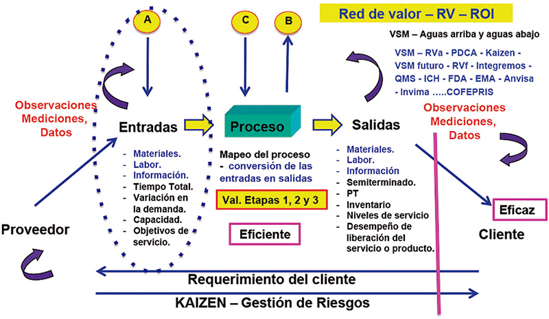 Por esta razón es que al apoyarnos en la información que nos generan todos los sistemas de calidad, que incluyen a todos los servicios proporcionados a la planta a los procesos productivos y a la cadena de valor externa, tenemos que en la implementación de las etapas 1, 2 y 3 tendremos la oportunidad de detectar potenciales efectos de falla, implementar sistemas de monitoreo continuo (estado 2), y mejorar en la red de valor de la organización al aplicar las lecciones aprendidas en las actividades de evaluación de tendencias, mantenimientos predictivos (TPM), eventos Kaizen en la fuente en la cual se genera la calidad del producto (fig. 8), integrando a los operadores y formándolos en conocimientos Yellow Belts, que apoyen entregando la información requerida a los analistas (Green Belts) de la información, aplicando la estadística y analizando los gráficos de tendencias en beneficio de la mejora continua de los procesos (Black Belts), reflejándose los resultados en un incremento en el ROI (Retorno de la inversión), representados visualmente en la fig. 9, 10 y 11.