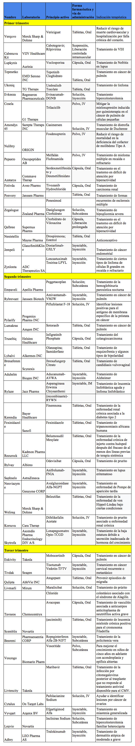 Durante 2020, la FDA aprobó 53 moléculas y en 2021 fueron 50 entre las que se incluye el primer inhibidor KRAS para cáncer y el primer anticuerpo anti amiloide para la enfermedad de Alzheimer. Respecto a los grupos terapéuticos sigue siendo el de mayor interés el de los productos oncológicos y algunas otras moléculas que son para el tratamiento de enfermedades huérfanas. Se mantiene en el promedio de 50 al año cuando en la década anterior eran 24 por año.