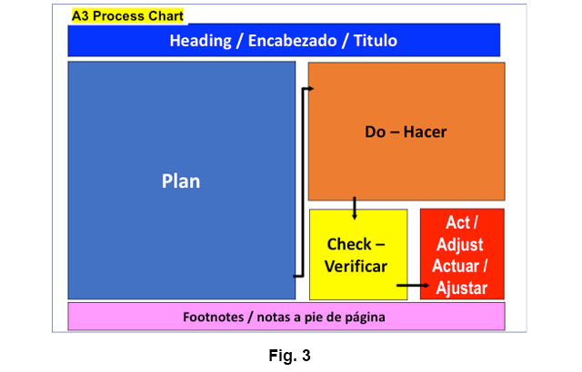 El nombre de A3 proviene del tamaño del papel en el que se redactó por primera vez, se desarrolló e implementó, en el que durante su elaboración se debe incluir (Fig. 2):