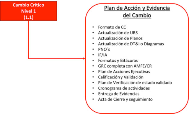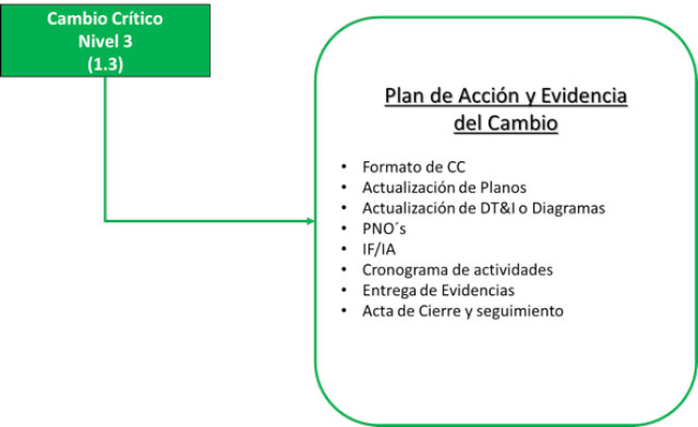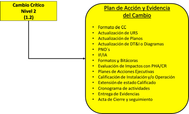 Las acciones recomendadas para los Controles de Cambio, Críticos por los niveles se presentan a continuación: