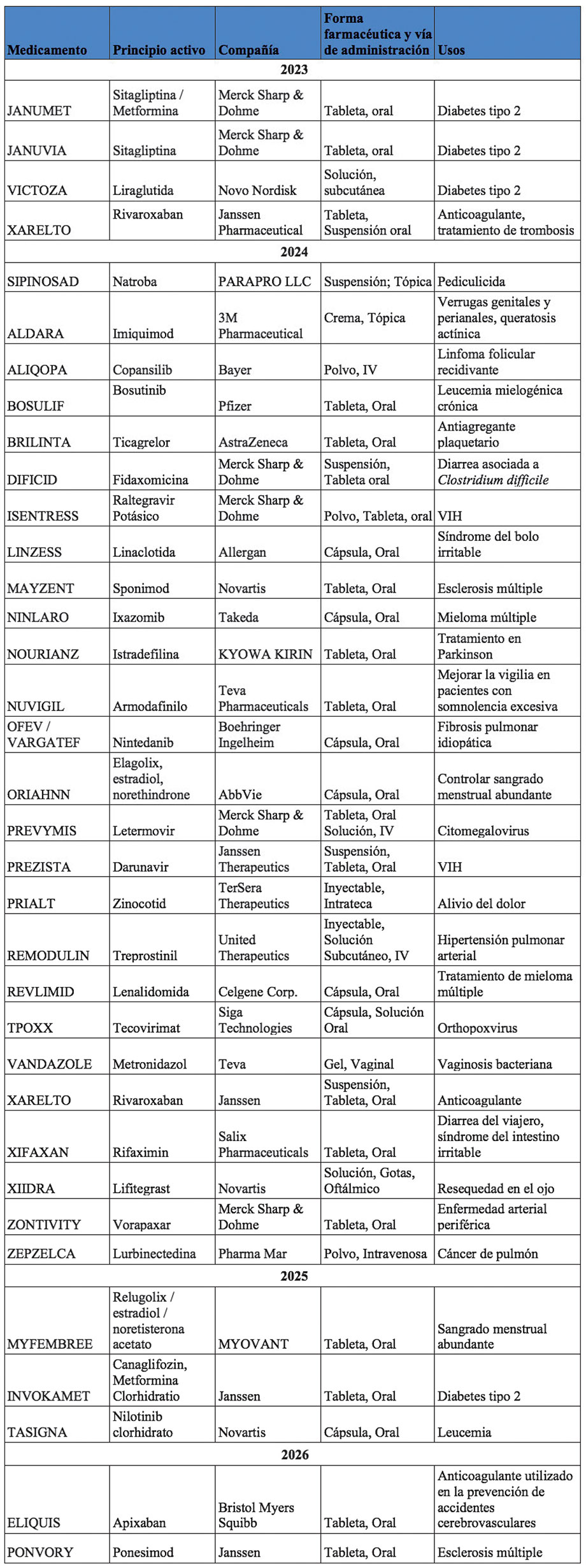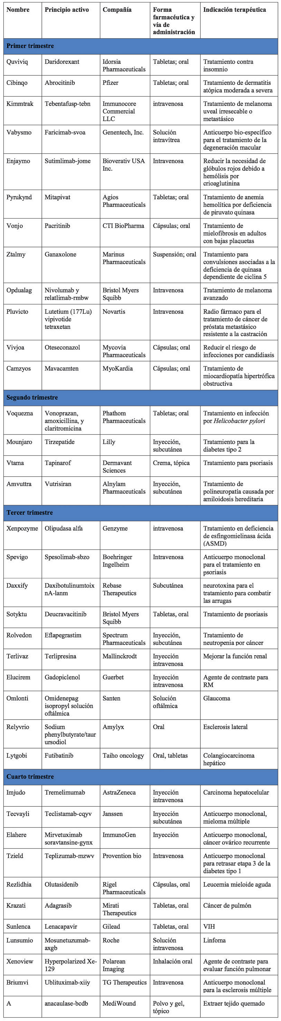 Trece de estos medicamentos fueron diseñados como terapia innovadora, entre ellos: Camzyos, Cibinqo, Enjaymo, Kimmtrak, Krazati, Lunsumio, Lytgobi, Pluvicto, Spevigo, Sunlenca, Tecvayli, Tzield y Xenpozyme.