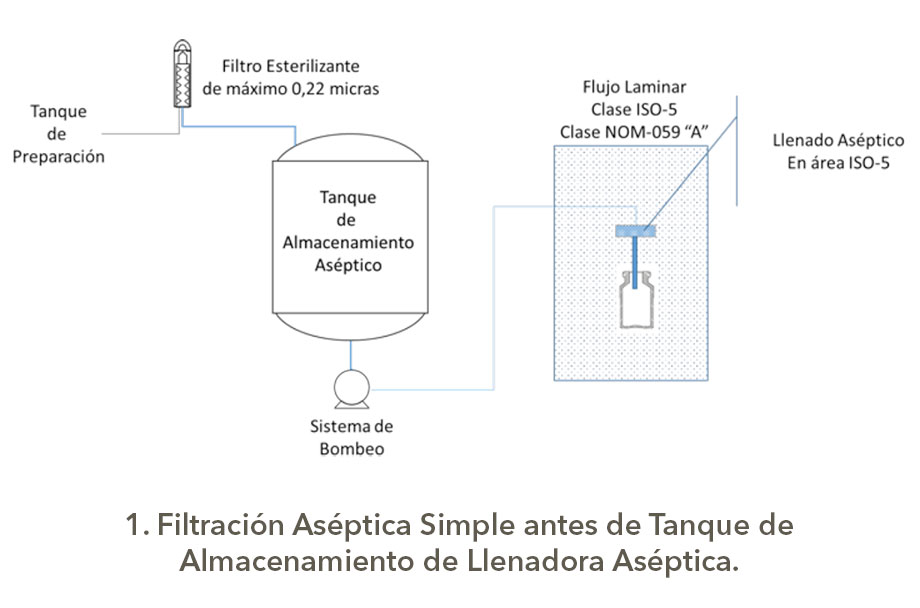 Estas configuraciones para la filtración aséptica tienen diferentes índices de robustez, los cuales dependerán del nivel de carga biológica y origen del granel o afluente a filtrar, así como la criticidad del producto, obviamente no es lo mismo filtrar un genérico con API´s estériles y con excipientes (vehículos correctamente dicho) de Biocarga controlada que productos biotecnológicos o biológicos que son formulados con partículas viables de uso terapéutico o que son por sí mismo promotores de crecimiento, así como si son medios de cultivo usados para manufactura en biotecnología.