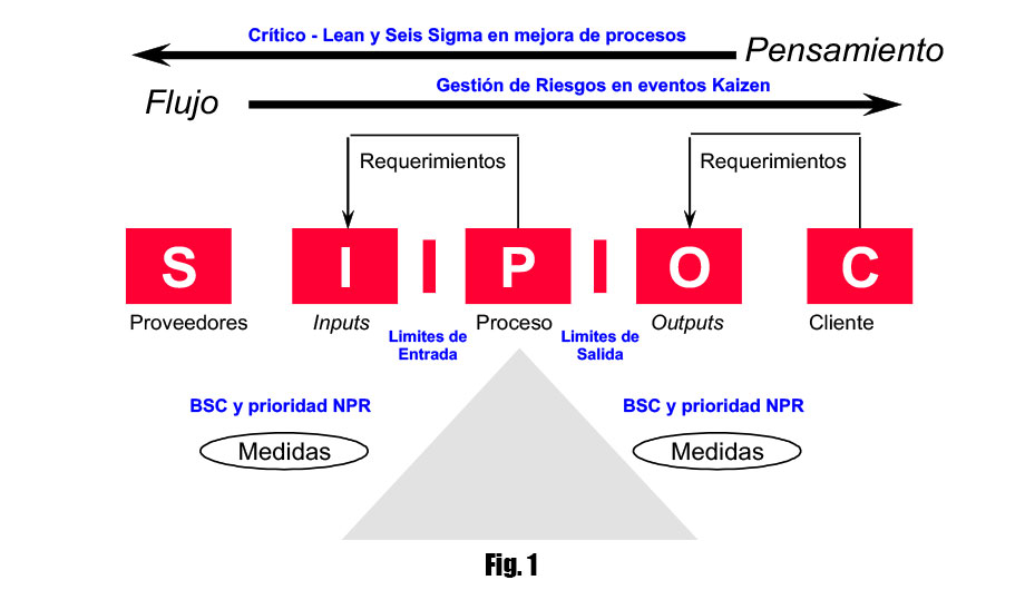De la Fig. 2 tenemos que el pensamiento crítico y el de Lean Six Sigma para la mejora de procesos proviene del cliente, en el que se hace énfasis en el planteamiento realizado en este artículo, se presenta de derecha a izquierda, y cuando lo aplicamos dentro de la organización, es de izquierda a derecha, a través de eventos kaizen y la gestión de riesgos partiendo desde los proveedores, a las entradas, en los procesos internos de la cadena de valor para tener controlados estos procesos y tener a la salida productos seguros en cumplimiento con los requerimientos del cliente, tanto externo, interno y en cumplimiento regulatorio, listos para su distribución al paciente y/o al punto de venta.