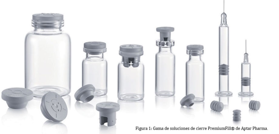 Aptar Pharma lleva décadas liderando el desarrollo de componentes de cierre de inyectables, haciendo uso de formulaciones puras y procesos de fabricación de vanguardia (Figura 1). Como socio clave de los fabricantes de medicamentos, Aptar Pharma se adapta a la evolución del mercado para permitir el desarrollo exitoso de fármacos. Aptar Pharma, que ya es líder mundial en protectores rígidos de agujas y un actor clave en soluciones de película de recubrimiento de etileno tetrafluoroetileno (ETFE) para medicamentos delicados a través de PremiumCoat®, ha estado desarrollando nuevas estrategias y soluciones para satisfacer las crecientes necesidades del mercado respecto de la contaminación externa. Las soluciones PremiumFill® para tapones de viales y émbolos de jeringas proporcionan a los socios farmacéuticos componentes de cierre de mayor calidad con especificaciones más estrictas en cuanto a criterios clave de contaminación. Estas especificaciones contemplan la contaminación de origen biológico, las partículas (incluidas las extrañas, metálicas o de goma) y las fibras, con un mejor índice general de recuento de partículas.