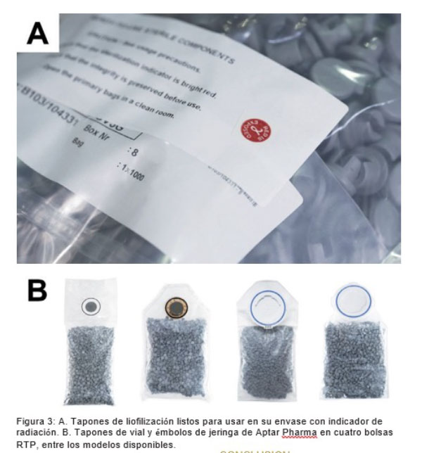 Otra medida sería cambiar los cierres no estériles listos para esterilizar (RTS, por sus siglas en inglés) por componentes esterilizados por rayos gamma listos para usar (RTU, por sus siglas en inglés). Además de ser la única solución que garantiza la esterilidad a la hora de usarlos, los RTU también evitan el uso de Tyvek, que se considera una fuente de fibras3. Las soluciones RTU de Aptar Pharma utilizan únicamente bolsas de polietileno soldadas, con o sin puerto de transferencia rápida (RTP, por sus siglas en inglés), lo que ayuda a los fabricantes farmacéuticos a cumplir tanto con los requisitos de garantía de esterilidad como con los de control de contaminación establecidos en la actualización del Anexo 1. Además, el uso de una solución RTU puede resultar eficiente desde el punto de vista operativo, ya que ahorra tiempo, costos y espacio asociados al equipamiento de la esterilización y su validación (Figura 3).