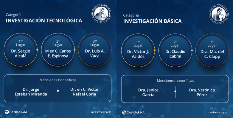 Esta presea es el reconocimiento al esfuerzo e importante labor que realiza la comunidad científica en beneficio de la salud de la población mexicana; se evaluaron 44 trabajos y los galardonados son: