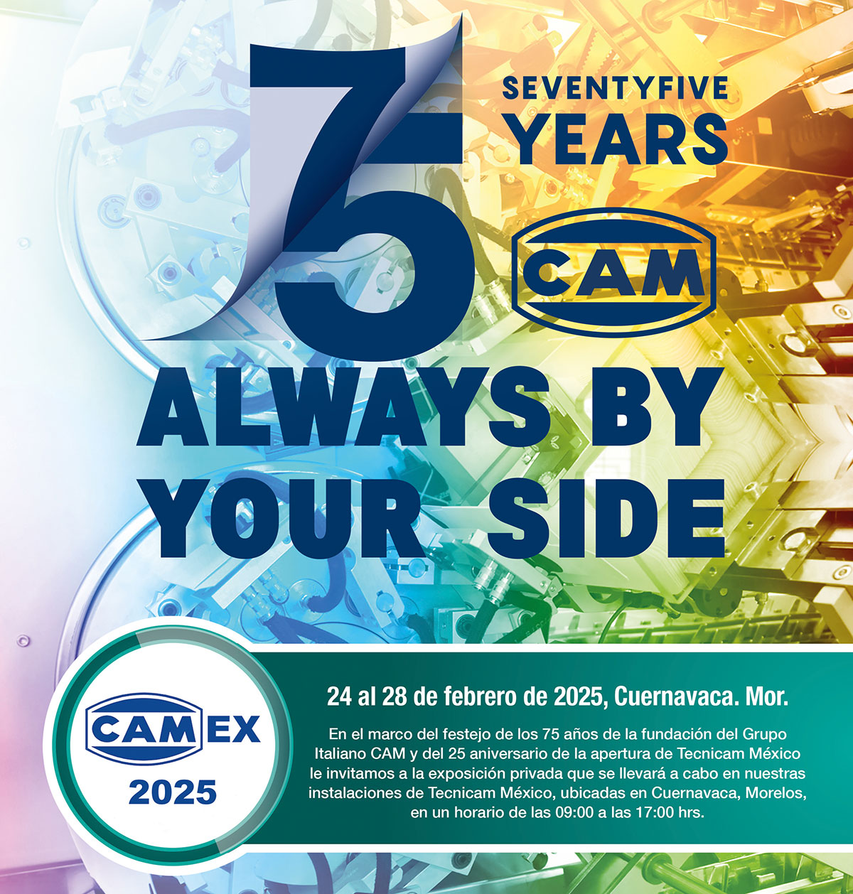 Comunicado. En el marco del festejo de los 75 años de la fundación del Grupo Italiano CAM y del 25 aniversario de la apertura de Tecnicam México, el centro de servicio especializado del grupo para México, Centroamérica y El Caribe, la firma invita a su próxima CAMex 2025, que se llevará a cabo de 24 al 28 de febrero, en las instalaciones de Tecnicam, ubicadas en Cuernavaca, Morelos, entre las 09:00 y las 17:00 horas.