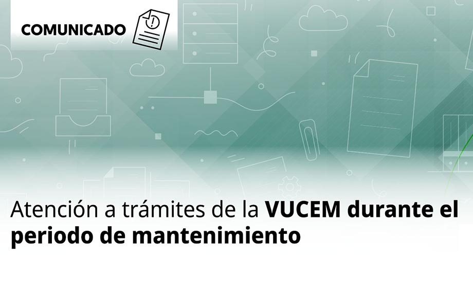La instancia invita a los usuarios que cuenten con Permisos de Importación, cuya vigencia concluya durante el periodo de mantenimiento, a presentar sus solicitudes de prórroga y modificación a través de la VUCEM antes de este periodo, ya que no podrán ser solicitadas de forma física.