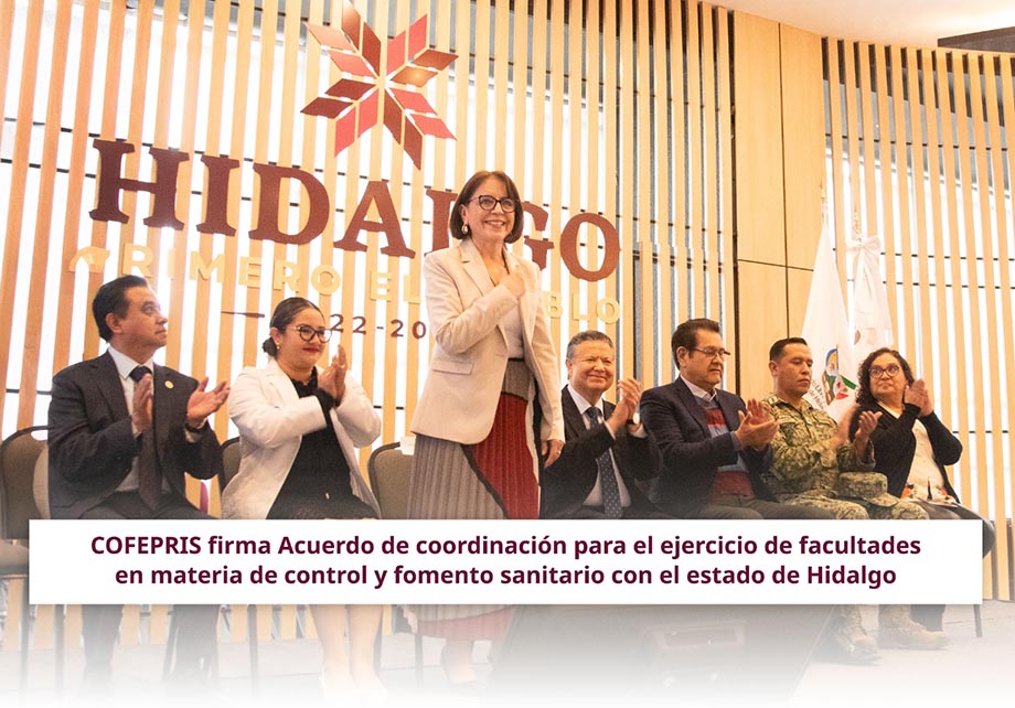 Comunicado. La Cofepris, el Gobierno del estado de Hidalgo y la Secretaría de Salud de dicha entidad, firmaron el Acuerdo de Coordinación para el Ejercicio de Facultades en materia de Control y Fomento Sanitarios para fortalecer la ejecución y desarrollo de programas y proyectos de la Comisión para la Protección contra Riesgos Sanitarios del estado de Hidalgo (COPRISEH) y de su Laboratorio Estatal de Salud Pública.