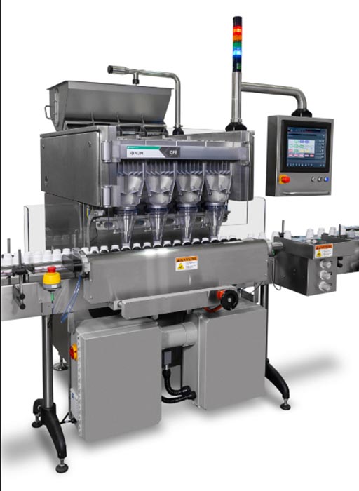 El CFE puede contar una amplia variedad de comprimidos, cápsulas y geles blandos recubiertos y no recubiertos, y llenar botellas redondas, ovaladas y rectangulares de plástico o vidrio. Disponible con tres o cuatro módulos de conteo y seis canales de descarga, el CFE permite a fabricantes y envasadores comenzar con tres módulos y añadir fácilmente un cuarto en campo a medida que aumentan las necesidades de producción.