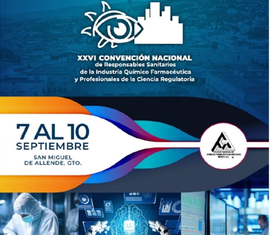 Comunicado. El Colegio Nacional de Químicos Farmacéuticos Biólogos México, A. C. realizará, del 07 al 10 de septiembre, el XXVI Convención Nacional de Responsables Sanitarios de la Industria Químico Farmacéutica y Profesionales de la Ciencia Regulatoria, en San Miguel de Allende, Guanajuato.