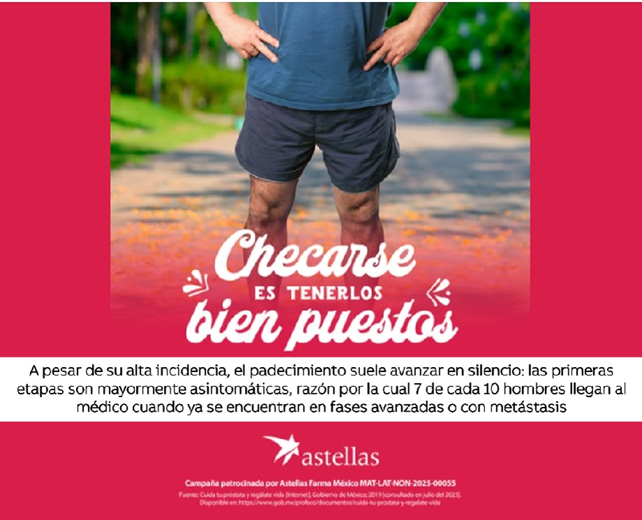 Comunicado. Astellas Farma México, en marco del Día Nacional de la Lucha contra el Cáncer de Próstata, a conmemorarse el 29 de noviembre, hizo un llamado urgente a reforzar la prevención y el monitoreo temprano de esta enfermedad, que continúa siendo una de las principales amenazas para la salud masculina en el país.