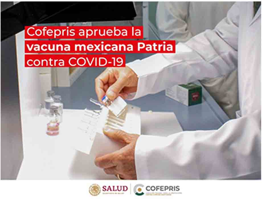 El equipo multidisciplinario de dictamen confirmó que la vacuna mexicana Patria contra Covid-19 del laboratorio Avimex cumple los más altos estándares de calidad, seguridad y eficacia, conforme a datos presentados en el expediente técnico ante esta comisión y permite su uso en las instituciones públicas que conforman el sector Salud.