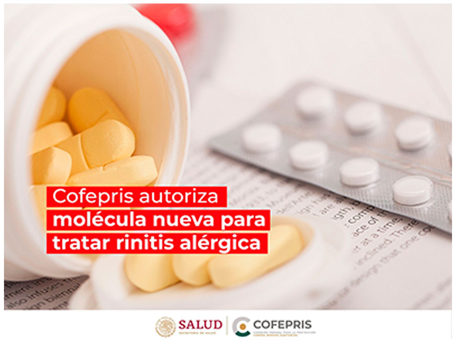 Comunicado. La Cofepris informó que aprobó el registro sanitario de olopatadina tabletas, una molécula nueva destinada al tratamiento de rinitis alérgica en adultos. El medicamento, conocido en el mercado mexicano desde 1998 en forma de gotas oftálmicas, por primera vez se autoriza en tabletas, ofreciendo una nueva alternativa entre la gran variedad de antihistamínicos disponibles para tratar este padecimiento.