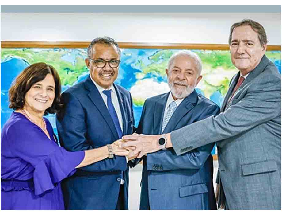 Comunicado. En visita oficial a Brasil, el director de la OPS, Jarbas Barbosa, y el director general de la OMS, Tedros Adhanom Ghebreyesus, se reunieron con el presidente de Brasil, Luiz Inácio Lula da Silva, y la ministra de Salud de ese país, Nísia Trindade, para repasar temas prioritarios para lograr un país, una región y un mundo más saludables, seguros y equitativos.