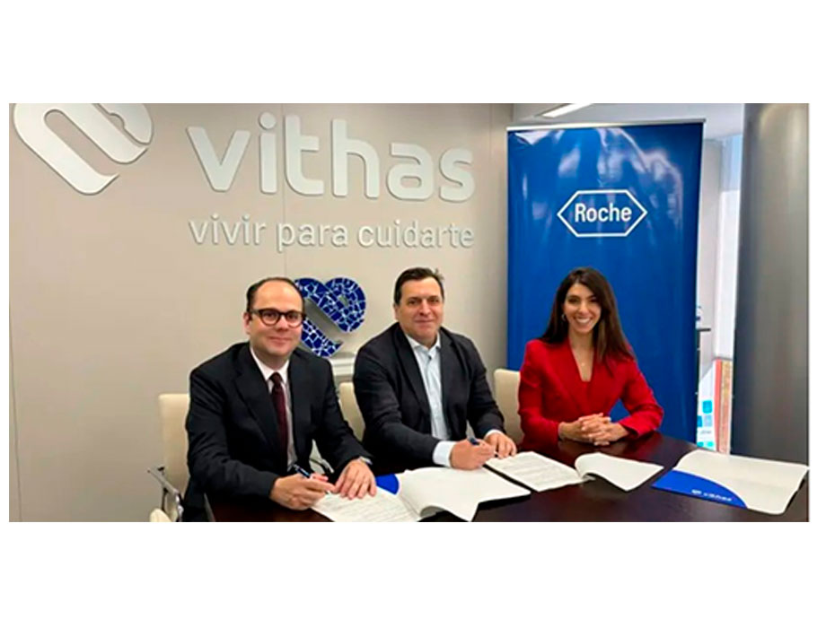 El convenio, firmado por el director general de Vithas, Pedro Rico; el director general de Roche Farma España, Patrick Wallach, y la directora de HealthCare Solutions de la compañía, Nuria Soler, tiene también entre sus fines maximizar la calidad de los procesos de diagnóstico.