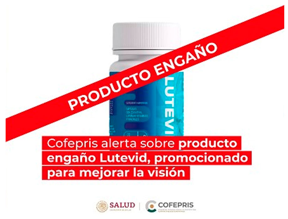 Comunicado. La Cofepris emitió una alerta a la población mexicana sobre la comercialización del producto engaño Lutevid en cápsulas, el cual se promociona incorrectamente como suplemento alimenticio para mejorar la visión.