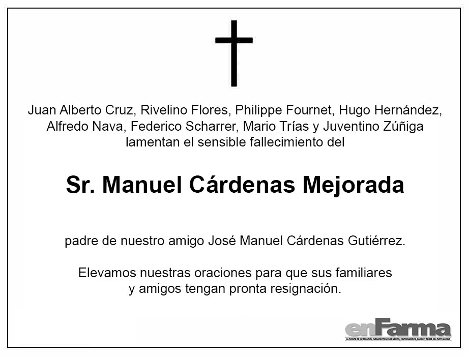 Juan Alberto Cruz, Rivelino Flores, Philippe Fournet, Hugo Hernández, Alfredo Nava, Federico Scharrer, Mario Trías y Juventino Zúñiga lamentan el sensible fallecimiento del Sr. Manuel Cárdenas Tweet Anterior Estados Miembros de la OPS aprueban estrategia para fortalecer la detección temprana de amenazas a la salud Siguiente Ferring refuerza la cadena de suministro global de terapia genética con una planta de fabricación europea